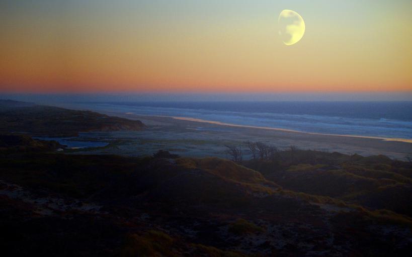 Keywords: coast beach ocean sea moon landscape shine glowing oregon seashore pacific