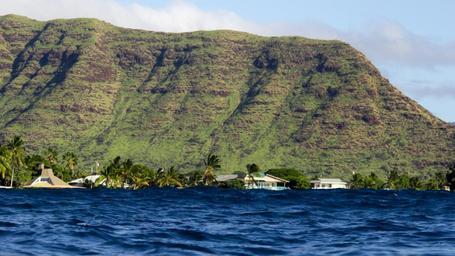 Keywords: coast shore water coean sea hill cliff vegetation huts houses blue nature