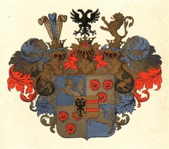 | Keywords: Coatofarms-aldenburg.jpg en Coat of arms - von Aldenburg Danmarks Adels Aarbog 1884 Creator Anders Thiset 1884 PD-old http //finnholbek dk/genealogy/showmedia php mediaID 104 PD-old Counter-quarterly with an inescutcheon Demi-lions in crest Party per pale inescutcheons Horses forcené 3 roses in heraldry Double-headed eagles sable Heraldic helmets Coats of arms by Anders Thiset Coats of arms of Aldenburg family Ostrich feathers in crest Heraldic lambrequins argent gules or and sable Danmarks Adels Aarbog |