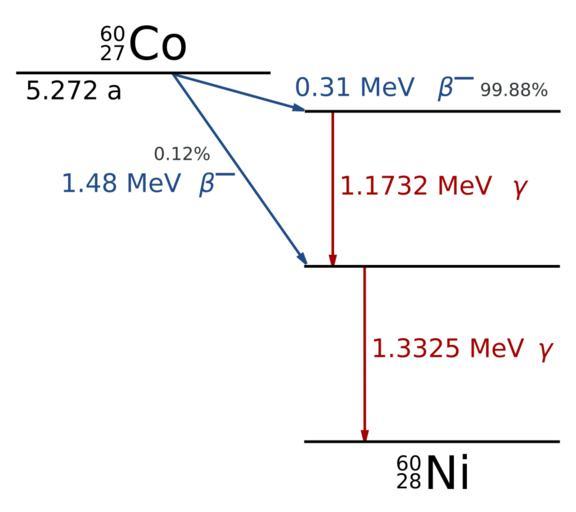 Keywords: Cobalt-60 Decay Scheme.svg The radioactive Decay scheme of Cobalt 60 The cobalt decays to nickel via beta-minus decay then two more stable nickel nuclei via two further gamma emissions Self-made Inkscape http //www jimoid com/Physics/Clinical 20Physics/co60_decay htm 05/10/2007 Inductiveload with all lines File Cobalt-60 Decay Schemep svg Cobalt-60 Decay schemes |