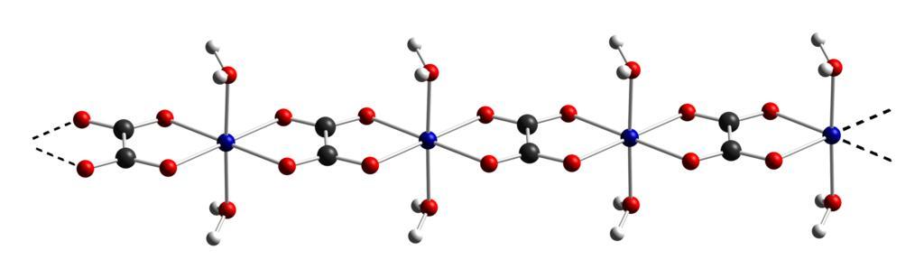Keywords: Cobalt(II)-oxalate-dihydrate-from-xtal-2005-CM-3D-balls.png Ball-and-stick diagram of part of the crystal structure of cobalt II oxalate dihydrate Co ox <sub>2</sub> OH<sub>2</sub> <sub>2</sub><sub> ˆž</sub> Colour code Cobalt Co blue Carbon C black Oxygen O red Hydrogen H white Crystal structure from http //dx doi org/10 1107/S0108270104030409 Acta Cryst 2005 C61 m58-m60 Image generated in http //www crystalmaker com/ CrystalMaker 8 3 Own 2010-09-19 Ben Mills Benjah-bmm27 Images by Ben Mills Ball-and-stick models Cobalt II oxalate