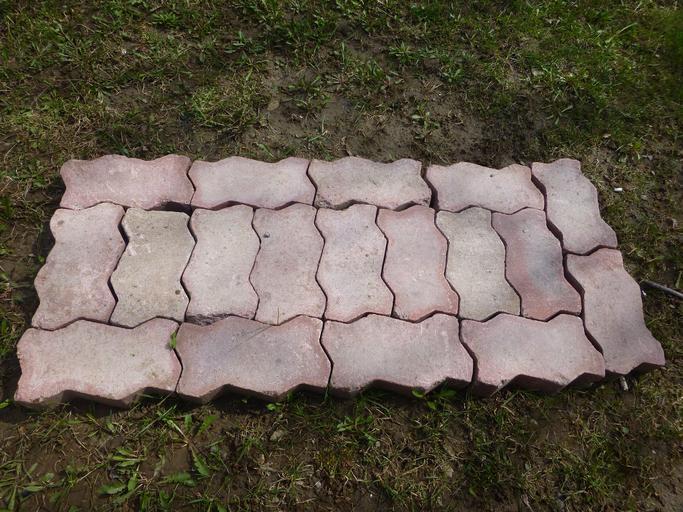 Keywords: cobblestones stones grass yard cobblestone pattern surface textured material brick construction paving
