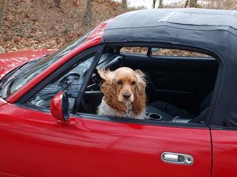 Keywords: cocker spaniel dog car happy cool gun dog driving enjoying fun window
