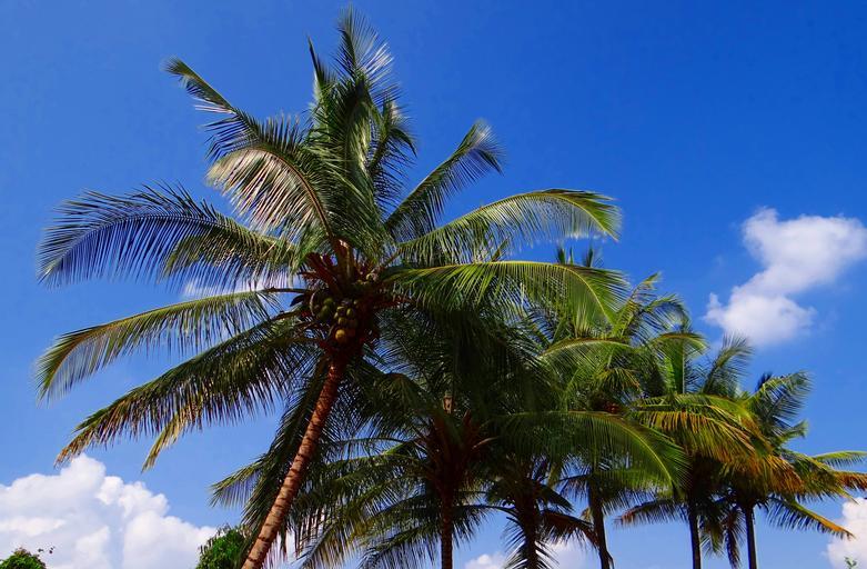 Keywords: coconut palm trees tropical sky blue dharwad india