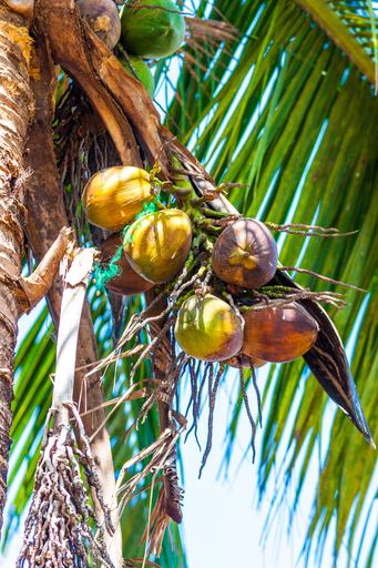 Keywords: coconuts palm palm fronds coconut tree exotic holiday delicious stone bowl food paradise tropical south sea drupe palm leaf philippines