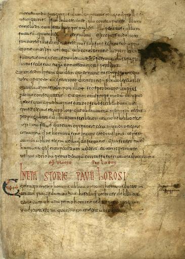 | Keywords: Códice de Roda.jpg es Códice de Roda folio 1r El titular miniado en rojo es el íncipit de la Historiae adversus paganos de Paulo Orosio textualmente Incipit Storie Pauli Horosi Manuscrito conservado en la Real Academia de la Historia España siglo X-XI 232 folios 29 x 21 cm en pergamino Escritura visigótica Encuadernado en cuadernos de 8 folios Caja de escritura 23 x 15 cm o menores Texto a línea tirada menos los folios 161r -176v en los que el texto es a doble columna Con lagunas en el texto incompleto y parcialmente mutilado Títulos con capitales visigóticas miniadas en rojo y azul; iniciales primarias polícromas ornamentadas zoomóficas de lacerías etc ; las secundarias rellenas fitomórficas etc ; en el f 197r se reproduce Babilonia y en el f 197v Ninive y Toledo; en el f 200v mapamundi de San Isidoro; en el f 206r Adoración de los Reyes Magos; en el f 232r notación musical Contenido Contenido parcial Storie Pauli Horosi h 1r -155r El códice se divide en dos bloques 1º Paulo Orosio Historia Storie Pauli Horosi f 1r -155r 2º Diversas crónicas y textos misceláneos f 156r -232r Entre los que se encuentran Fragmentos de San Isidoro Historia Wandalorum f 156r -157v Historia Suevorum f 157v -167r Chronica f 159r -167r e Historia Gothorum f 167r -176v Chronica Adephonsi III h 178r -185r Chronica prophetica f 186r -189v Collectiones in epistolas et evangelia Passio Domini nostri Ihesu Christi / Smaragdus Sancti Michaelis O S B Fragmentos sobre el Credo o el Árbol de la ciencia Fuente http //bibliotecadigital rah es/dgbrah/i18n/consulta/resultados_busqueda cmd id 35061 posicion 279 forma ficha ficha de la RAH Encuadernación moderna en piel y tejuelo con el título Colección de cronicones http //bibliotecadigital rah es/dgbrah/i18n/catalogo_imagenes/grupo cmd path 1000124 posicion 3 presentacion pagina author circa 990 PD-old-100 Códice de Roda Paulo Orosio |