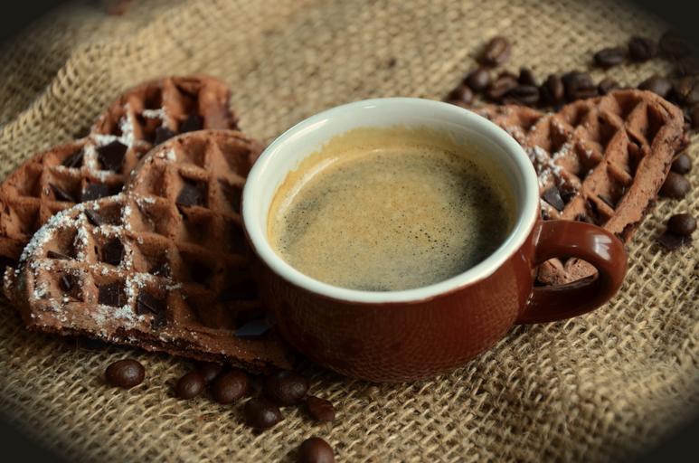 Keywords: coffee coffee cup benefit from coffee beans foam cup drink caffeine aroma enjoy coffee break pastries waffles waffle heart drink coffee delicious brown aromatic baked dark beans