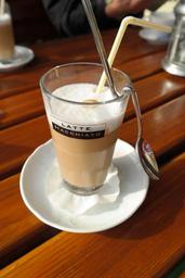 Keywords: coffee latte macchiato milchschaum warm delicious caffeine straw tube spoon bent decoration decorative