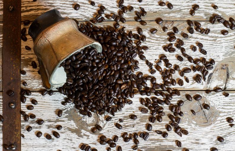 Keywords: coffee mug coffee mug cup spill coffee beans beans coffee shop drink beverage caffeine hot white breakfast cafe espresso table cup of coffee black aroma fresh handle restaurant
