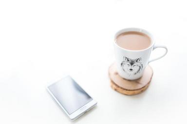Keywords: coffee mug white wolf mobile phone smartphone cell phone devices technology white desk desk