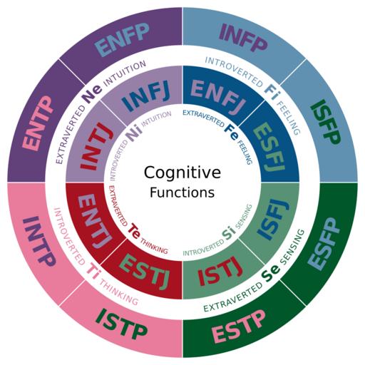 Keywords: Cognitive Functions.svg en A diagram depicting the cognitive functions of each Myers-Briggs personality type A type's background color represents its dominant function and its text color represents its auxiliary function 2016-11-22 I recreated File CognitiveFunctions png from scratch in vector form Original concepts by Katharine Cook Briggs 1875-1968 and Isabel Briggs Myers 1897-1980 <br/> Author of the referenced image is JakeBeech other versions other fields I v Custom license marker 2016 11 22 PD-user Offnfopt cc-zero Myers-Briggs Type Indicator |