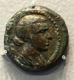 | Keywords: Coin of Kleopatra VII, obverse, draped bust of Kleopatra VII, Alexandria, 51-31 BC, bronze - Arthur M. Sackler Museum, Harvard University - DSC01465.jpg en Exhibit in the Arthur M Sackler Museum Harvard University Cambridge Massachusetts USA This artwork is in the public domain because the artist died more than 70 years ago 2015-04-11 12 38 58 own Daderot other versions PD-old-70 cc-zero Ancient Egyptian art in the Arthur M Sackler Museum Coins in the Arthur M Sackler Museum Coins of Cleopatra VII |