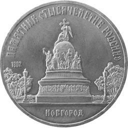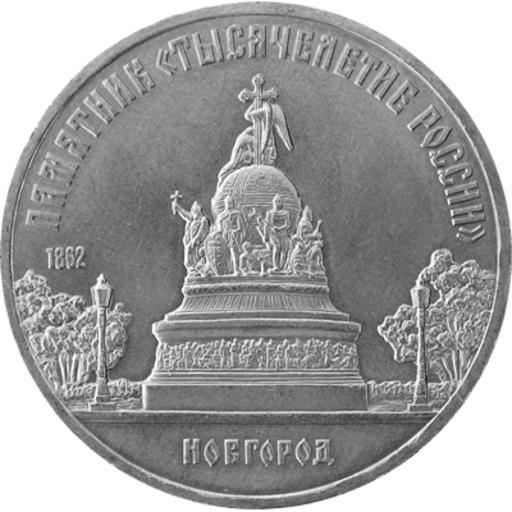 | Keywords: Coin Millennium of Russia Monument.png en USSR 5-ruble coin released in the USSR on October 12 1988 to commemorate Millenium of Russia monument in Novorod own Loginname PD-RU-exempt coins Veliky Novgorod on coins Commemorative coins of USSR 1980s |