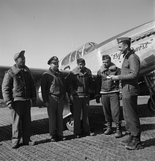 | Keywords: Col. Benjamin O. Davis at Ramitelli, Italy.jpg Photograph en Col Benjamin O Davis at Ramitelli Italy March 1945 presenting war bond for best kept A/C Photograph shows Col Benjamin O Davis presenting war bond for best kept A/C Left to right Crew chief Marcellus G Smith Louisville KY 100th F S ; James A Walker Manning SC 43-E; unknown airman; George S Spanky Roberts; and Davis Source Photographer's notes accession number Reproduction Number LC-DIG-ppmsca-13256 digital file from original neg Call Number LC-F9-02-4503-315-03 item P P Repository Library of Congress Prints and Photographs Division Washington D C 20540 USA Also available as contact sheet in LOT 12447-1 Title devised by Library staff Forms part of Toni Frissell Collection Library of Congress LOC-image ppmsca 13256 Rights Advisory No known restrictions on publication <gallery> Col benjamin o davis at ramitelli italy tif tif </gallery> Toni Frissell http //www loc gov/rr/print/res/070_fris html 332d Fighter Group United States Army Air Forces Uploaded with UploadWizard Toni Frissell |