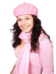 Keywords: cold cute face fashion female girl happy hat pink scarf smiling teen warm white winter woman young