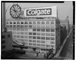 | Keywords: Colgate Clock in situ.jpg  en Colgate Clock atop factory building facing Hudson River at Exchange Place http //www loc gov/pictures/collection/hh/item/nj1677 photos 347851p/ PD-USGov-NPS-HAER 150px 40 43 12 N 74 2 2 W heading W PD-USGov Colgate Clock Jersey City New Jersey Black and white photographs of Jersey City New Jersey Factories in New Jersey |