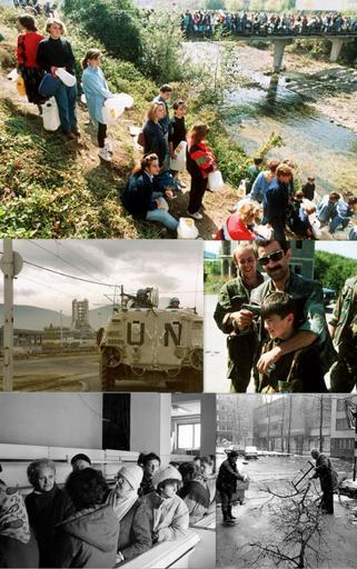 Keywords: Collage Siege of Sarajevo.jpg en Collage of the 1992-1995 siege of Sarajevo clockwise from the top Residents of Sarajevo stand in line to get water <br>A Serb commander puts a gun to the head of his son as he and his friends joke around while waiting for a prisoner exchange near Sarajevo summer of 1992 <br>winter of 1992-1993 Cutting branches from Sarajevo's trees -- often at risk of being sniped -- as fuel for stoves to heat water and provide occasional meagre warmth Winter brought freezing indoor temperatures often even colder than outside <br> Residents of the Baščaršija Sarajevo old town district wait to receive rations from a UNHCR humanitarian aid delivery their first in 40 days <br>A typical street scene 2012-02-14 File Evstafiev-bosnia-sarajevo-water-line jpg<br> File Evstafiev-bosnia-serbs-boy-gun-to-head jpg<br> File Sarajevo Siege Collecting Firewood 2 jpg<br> File Sarajevo Siege Queue for UNHCR-rations jpg<br> File Opp mot Sniper Alley jpg Фото ихаил Евстафьев Photo Mikhail Evstafiev <br> Christian Maréchal cc-zero Siege of Sarajevo Montages of Sarajevo |