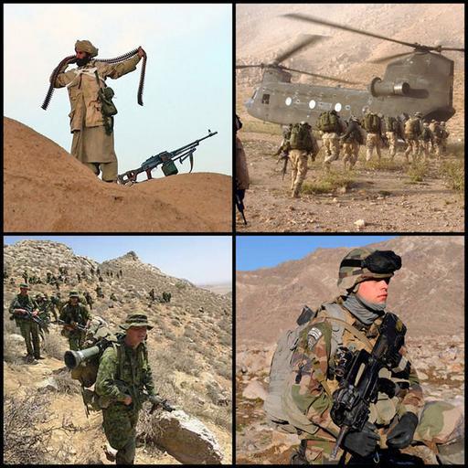 Keywords: Collage War in Afghanistan.jpg Canadian soldiers from 3PPCLI move into the hills to search for Al Qaeda and Taliban fighters after an air assault onto an objective north of Qualat Afghanistan The soldiers are participating in Operation Cherokee Sky in support of Operation Enduring Freedom Photo by Staff Sgt Robert Hyatt USA July 2002 http //www defendamerica mil/images/photos/jul2002/pi071902a1 jpg source Original caption <blockquote>An Anti-Taliban Forces ATF fighter wraps a bandolier of ammunition for his 7 62mm PK Kalashnikov machine gun around his body as ATF personnel help secure a compound in the Helmand Province of Afghanistan during Operation ENDURING FREEDOM </blockquote> French soldiers from the 27ème bataillon de chasseurs alpins and French Task Force Tiger patrol the many valleys of Kapisa province Afghanistan April 21 2009 Canadian_soldiers_afghanistan jpg Northernalliance2002_crop jpg French_Marines_Afghanistan JPG US_10th_Mountain_Division_soldiers_in_Afghanistan jpg 2010-07-19 07 01 UTC Canadian_soldiers_afghanistan jpg Jkelly Northernalliance2002_crop jpg Phc Johnny Bivera USN French_Marines_Afghanistan JPG Maj Patrick Simo Original uploader was Koalorka at http //en wikipedia org en wikipedia US_10th_Mountain_Division_soldiers_in_Afghanistan jpg Duffman derivative work Dr Claudio <span class signature-talk >talk</span> Original upload log This image is a derivative work of the following images File Canadian_soldiers_afghanistan jpg licensed with PD-USGov-Military 2006-04-05T05 33 14Z Jkelly 500x328 60321 Bytes <nowiki>Canadian soldiers from 3PPCLI move into the hills to search for Al Qaeda and Taliban fighters after an air assault onto an objective north of Qualat Afghanistan The soldiers are participating in Operation Cherokee Sky in su</nowiki> File Northernalliance2002_crop jpg licensed with PD-USGov-Military-Navy 2008-03-22T08 02 44Z Movieevery 1312x1200 350917 Bytes <nowiki></nowiki> 2008-03-22T07 57 46Z Movieevery 1312x1200 439633 Bytes <nowiki> Original caption An Anti-Taliban Forces ATF fighter wraps a bandolier of ammunition for his 7 62mm PK Kalashinkov machine gun around his body as ATF personnel help secure a compound in the Helman</nowiki> File French_Marines_Afghanistan JPG licensed with PD-USGov-Military 2010-04-21T12 31 41Z Sanandros 6171x4106 2365817 Bytes <nowiki> French soldiers from the 27th Alpine Rangers Battalion and French Task Force Tiger patrol the many valleys of Kapisa province Afghanistan April 21 2009 Transferred from http //en</nowiki> File US_10th_Mountain_Division_soldiers_in_Afghanistan jpg licensed with PD-USGov 2005-12-17T22 05 20Z Duffman 2064x1504 522033 Bytes <nowiki>Soldiers quickly march to the ramp of the CH-47 Chinook helicopter that will return them to Kandahar Army Air Field on Sept 4 2003 The Soldiers were searching in Daychopan Province Afghanistan for Taliban fighters and ill</nowiki> Uploaded with derivativeFX War in Afghanistan 2001-present Collage Montages of war |