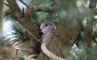 Keywords: collared dove bird nest building garden nest