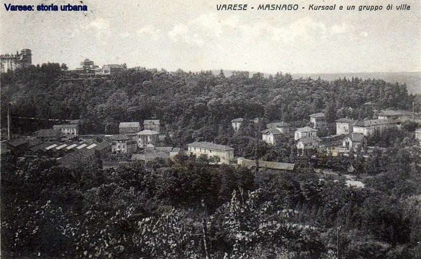 Keywords: Vista del colle Campigli sormontato dal Kursaal (a destra) e dal Palace Hotel. In basso a sinistra lo stabilimento Macchi. palacehotel varese kursaal masnago