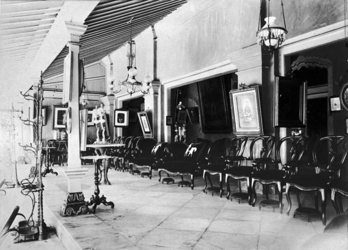 Keywords: COLLECTIE TROPENMUSEUM De voorgalerij van de audiëntiezaal Gedung Kuning in de kraton van Sultan Hamengko Boewono VII te Djokjakarta. TMnr 60004762.jpg nl Foto Op achterwand foto van Prinses Wilhelmina E A De voorgalerij van de audiëntiezaal Gedung Kuning in de kraton van Sultan Hamengko Boewono VII te Djokjakarta ca 1890 institution Tropenmuseum KIT-source 60004762 Creator Kassian Cephas KIT-license PD-old-100 Images from KIT Voorstelling Activiteit / Functie - vloeren en vloerbedekking Images from KIT Voorstelling Activiteit / Functie - huisraad Images from KIT Voorstelling Activiteit / Functie - aan- zitten Ceiling light fixtures in Indonesia z Images from KIT Voorstelling Activiteit / Functie - kunst Photographs by Kassian Cephas Kraton of Yogyakarta Black and white photographs
