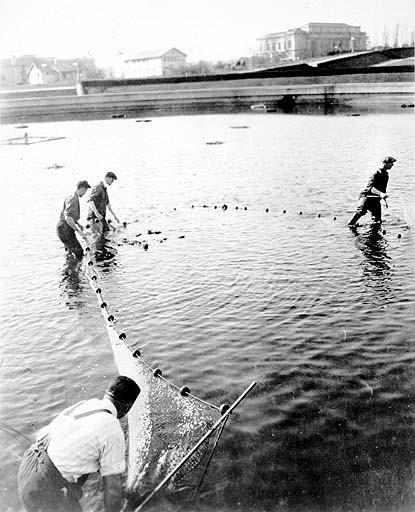 | Keywords: College of Fisheries class practicing seining the Geyser Basin, University of Washington campus, Seattle, 1921 (COBB 349).jpeg Photograph Creator John Nathan Cobb From John Cobb field notebook Class seining the Geyser Basin Univ of Wash 1921 Geyser Basin later changed to Drumheller Fountain Subjects LCTGM Lakes ponds--Washington State --Seattle Subjects LCSH University of Washington College of Fisheries; Frosh Pond Wash ; Ponds--Washington State --Seattle; Reservoirs--Washington State --Seattle; Fisheries--Research--Washington State --Seattle; College students--Washington State --Seattle depicted place Seattle Washington 1921 silver gelatin b w Institution University of Washington UWASH-JNCobb-source accession number 349 PD-old-auto-1923 1930 Information field Order Number COB044 Geyser Basin College of Fisheries University of Washington 1921 in Seattle People at work Purse seines Black and white photographs |
