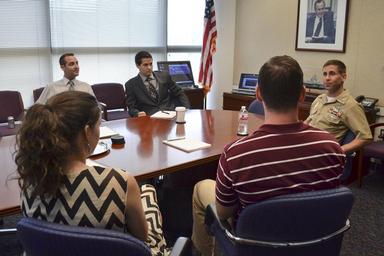 | Keywords: College Station visit 150903-N-IR859-291.jpg en 150903-N-IR859-291 COLLEGE STATION Texas Sept 3 2015 Sailors from USS George H W Bush CVN 77 speak to graduate students at The Bush School of Government and Public Service in College Station Texas The visit was part of three-day namesake trip to Texas where Bush Sailors engaged with the local community and spoke to groups of students about life on a nuclear aircraft carrier U S Navy photo by Mass Communication Specialist 1st Class Jen Blake/Released Unit Navy Media Content Services DVIDS Tags NMCS; DVIDS Bulk Import 2015-09-03 Jennifer Blake https //www dvidshub net/image/2171277/college-station-visit 150903-N-IR859-291 2015-09-12 00 29 COLLEGE STATION TX US PD-USGov-Military-Navy USS George H W Bush CVN-77 Images from DoD uploaded by Fæ |