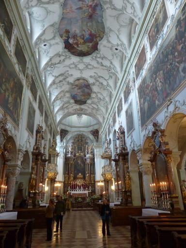 Keywords: collegiate church of st peter salzburg roman catholic monastery church stift st peter austria nave interior ceiling painting altar