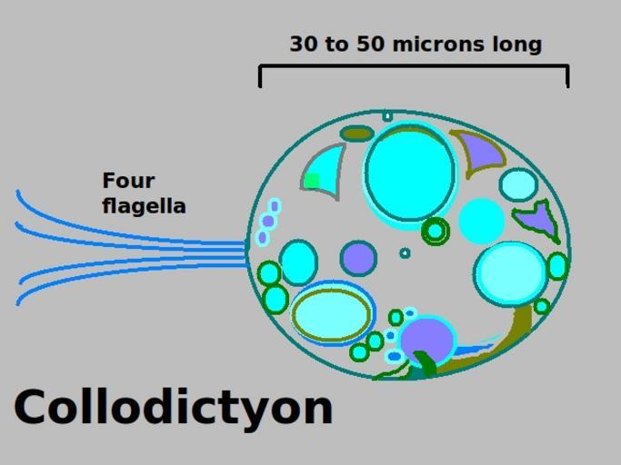 | Keywords: Collodictyon.png en A rough illustration of Collodictyon a single-celled eukaryote with four flagella for movement which lives in Lake As a lake south of Oslo Norway According to several reports Collodictyon may be notable for being man's remotest relative and further study may yield insights into the prehistoric beginnings of man hundreds of millions of years ago 2012-04-27 own Tomwsulcer Note for further information and a better image see http //www abc net au/science/articles/2012/04/27/3490291 htm cc-zero Uploaded with UploadWizard Collodictyon Diagrams in English Diagrams of animal anatomy |