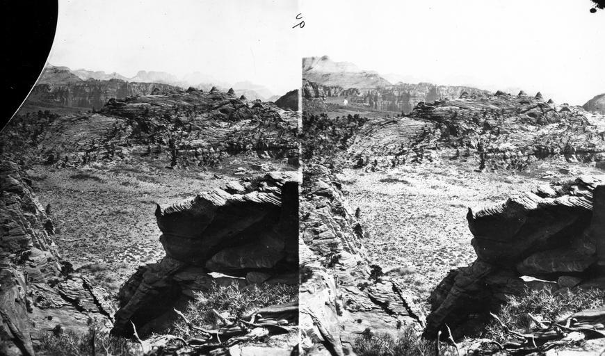 | Keywords: stereoscopic stereophotography stereophotographs historical usgs history geology mapping black and white blackandwhite bnw stereograph blackandwhite monochrome outdoor black and white Colob Country. Buttes of the Mukuntuweap Branch of the Virgin River in distance. On the horizon is shownthe Great Temple, or, as the Mormons call it, "Steamboat Rock," which is 7500 feet high. Springdale is just the other side of the square-topped buttes. Southern Utah.n.d. (Negative broken). (Stereoscopic view). Colob Country. Buttes of the Mukuntuweap Branch of the Virgin River in distance. On the horizon is shownthe Great Temple, or, as the Mormons call it, "Steamboat Rock," which is 7500 feet high. Springdale is just the other side of the square-topped buttes. Southern Utah.n.d. (Negative broken). (Stereoscopic view). |