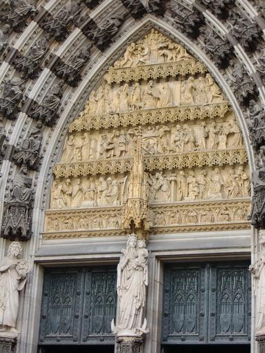 Keywords: cologne dom figures sculpture facade cologne cathedral places of interest tourist attraction church relief tympanon portal arch