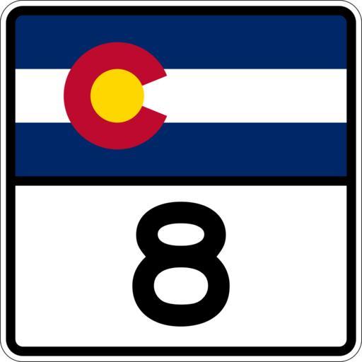 Keywords: Colorado 8.svg 600 mm by 600 mm 24 in by 24 in Colorado shield made to the specifications of the Manual on Uniform Traffic Control Devices MUTCD 2003 Edition sign M1-5 Uses the Roadgeek 2005 fonts United States law does not permit the copyrighting of typeface designs and the fonts are meant to be copies of a U S Government-produced work anyway own 2012-03-17 Fredddie originally by User Atanamir User TwinsMetsFan or User Pzoxicuvybtnrm among others Colorado State Highway 8 Colorado road signs 008 8 number