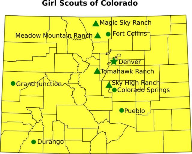 Keywords: Colorado-gsusa.svg Map of Girl Scout Councils in Colorado my work based on Wikipedia county maps 2008-12-24 Emma Pease Erp Original upload log en wikipedia Colorado-gsusa svg 2008-12-25 03 39 Erp 6234×4987× 151071 bytes <nowiki> Girl Scouts of Colorado map my work based on the wikipedia county map 12-24-2008 Emma Pease </nowiki> Girl Scouts of the USA Council maps Scouting in Colorado |