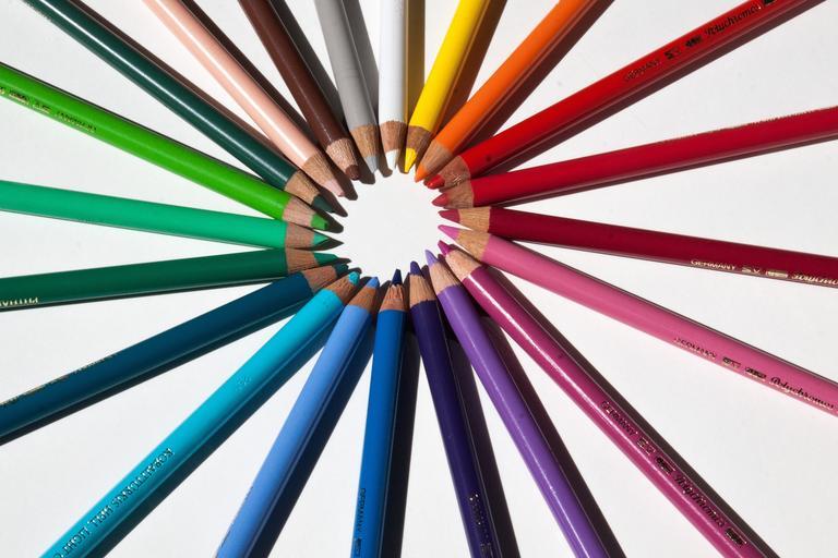 Keywords: colored pencils colour pencils star color circle writing or drawing device colorful with coloured mines cover of the mine lacquered wood different colored crayons pointed tips on leave draw sketch graphic design
