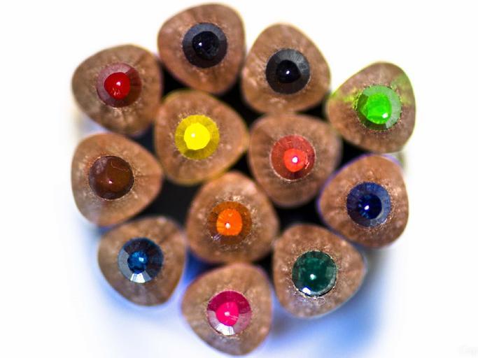 Keywords: colored pencils rainbow colorful sharpened wooden tips points color stacked draw rows pattern drawing texture