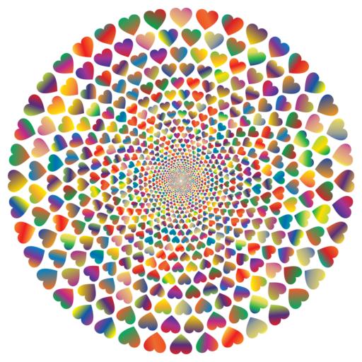 Keywords: colorful prismatic chromatic rainbow hearts love romance passion relationship valentine vortex maelstrom cyclone twirl whirlpool abstract geometric art