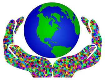 Keywords: colorful prismatic chromatic rainbow triangles triangular low poly polygon abstract geometric art world earth planet globe map geography cartography hands vector svg
