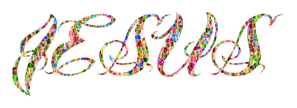 Keywords: colorful prismatic chromatic rainbow tiles tiled voronoi abstract geometric art jesus christ cross crucifix christian catholic religion messiah holy divine god gold shiny typography type text words faith spirituality church belief