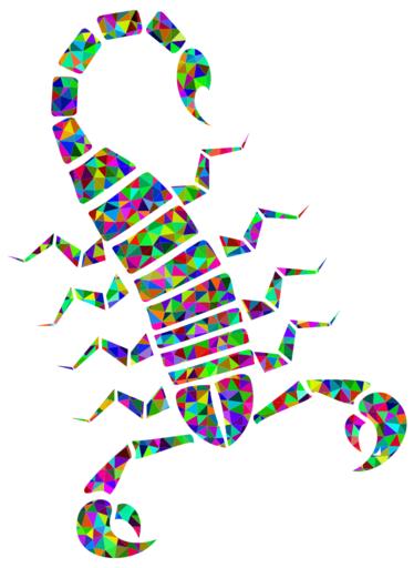 Keywords: colorful prismatic chromatic rainbow triangles triangular low poly polygon abstract geometric art tribal scorpion arachnid insect poisonous animal predator