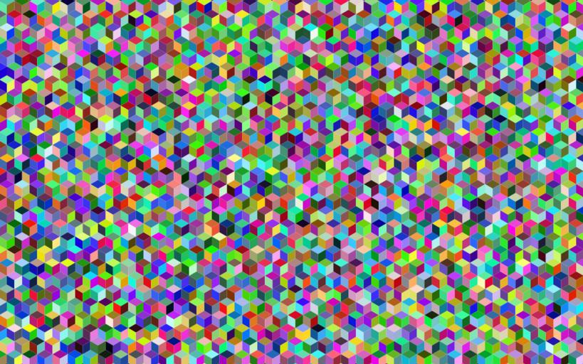 Keywords: colorful prismatic chromatic rainbow repeating pattern design geometric isometric 3d cubes widescreen wallpaper background texture