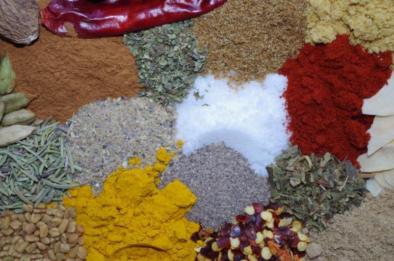 Keywords: colorful spices salt paprika turmeric cayenne pepper rosemary