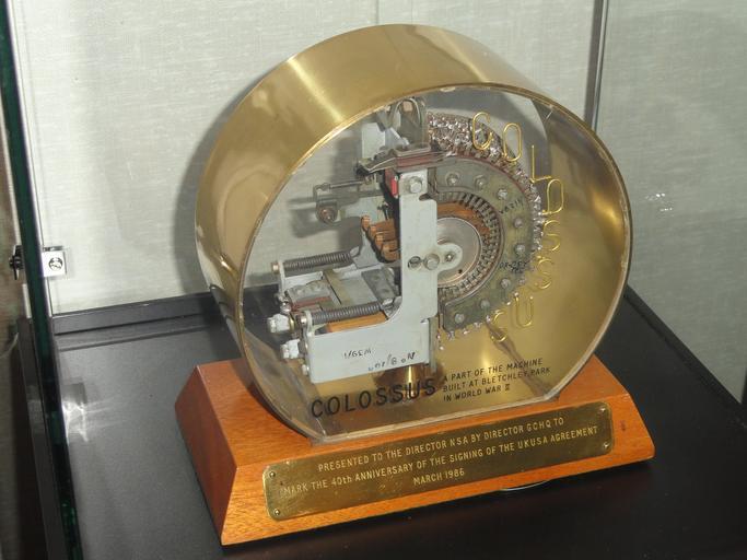 | Keywords: COLOSSUS, part of the machine, presented by Director GCHQ to Director NSA in 1986 - National Cryptologic Museum - DSC07890.JPG en Exhibit in the National Cryptologic Museum Fort Meade Maryland USA All items in this museum are unclassified; items created by the United States Government are not subject to copyright restrictions 2013-03-29 10 50 55 own Daderot cc-zero Uploaded with UploadWizard Computers in the National Cryptologic Museum Colossus computer | ||||
