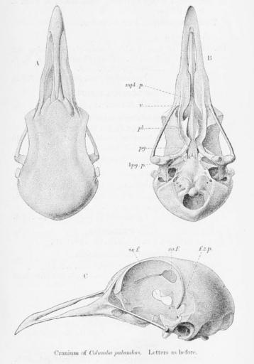 | Keywords: ColumbaSkull.jpg en Skull of a Pigeon http //www archive org/details/catalogueofspeci00shar Catalogue of the specimens illustrating the ostelogy of verebrated animals part 3 R Bowdler Sharpe 1891 PD-old Columba skulls Columba palumbus anatomy |