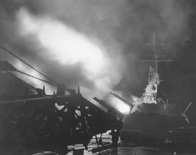Keywords: ColumbiaShortlands.jpg Photo 80-G-44058 Shortland Islands Bombardment 1 November 1943 After 6 /47 gun turrets of USS Columbia CL-56 firing during the night bombardment of Japanese facilities in the Shortlands that covered landings on Bougainville This photograph has been rather crudely retouched to eliminate radar antennas on gun directors and masthead Official U S Navy Photograph now in the collections of the National Archives http //www history navy mil/photos/sh-usn/usnsh-c/cl56 htm Removed caption read Photo 80-G-44058 USS Columbia bombarding the Shortland Islands 1 November 1943 PD-USGov Battle of Empress Augusta Bay Firing naval artillery USS Columbia CL-56 |