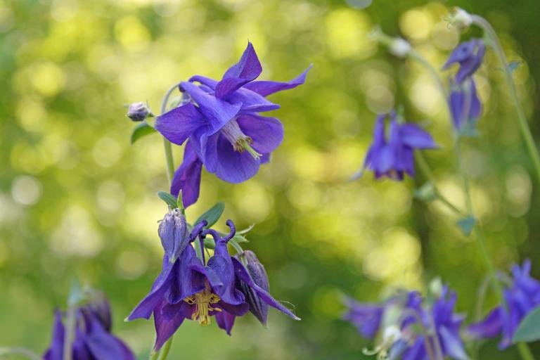 Keywords: columbine flowers nature summer flora blossom blue green meadow outdoor day natural ecology plants park sunny day garden