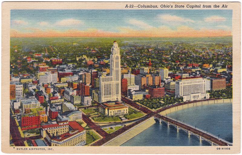 | Keywords: postcard postcards columbus columbus, ohio columbusohio ohio aerial view aerialview rivers river scioto river sciotoriver downtown civic center group civiccentergroup riverfront white border whiteborder linen curt teich co. curtteichco curteich c.t. art colortone ctartcolortone w.e. ayres weayres butler airphotos, inc. butlerairphotosinc 1957 1950s leveque tower levequetower leveque lincoln tower levequelincolntower leveque lincoln leveque lincolnleveque civic center civiccenter ohio state office building ohiostateofficebuilding state office building stateofficebuilding broad street broadstreet a.i.u. tower aiutower a.i.u. citadel aiucitadel drawing photo border Description on front of card: Columbus, Ohio's State Capitol from the Air No. in Series: A-22 Description on back of card: Business section and civic center showing U.S. Post Office, Municipal Buildings, Le Veque-Lincoln Tower and State Office Building on Marconi Boulevard. Published by: W.E. Ayres, Columbus, Ohio | Curteich-Chicago "C.T. Art-Colortone" postcard, a tradename under Curt Teich Co., Chicago, Illinois | Photo by Butler Airphotos, Inc. Used. Publisher Note: Curt Teich emigrated to Chicago in 1895. He had worked as a lithographer in Lobenstein, Germany. He founded the Curt Teich Company in 1898, concentrating on newspaper and magazine printing. He was an early publisher of postcards, but he didn't begin printing them himself until 1908. According to MetroPostcard.com, "As his competition dwindled, his sales expanded and his American factories would eventually turn out more postcards than any other in the United States. " The company was best known for their wide range of advertising and postcards of North America. By the 1920s, it was producing so many postcards with borders that they became recognized as a type dubbed "White Border Cards," creating an "era." Curt Teich started using offset presses in 1907, but it took a number of years before he had offset presses made to his satisfaction, and many more years for him to perfect the method. His innovations in this printing technique directly led to the production of what we now call "linens" by the early 1930s. The company aided the war effort during the second world war by also printing many military maps. Curt Teich eventually turned management of the company over to his son, but he remained active in company operations throughout its history. Curt Teich died in 1974 and the family business was sold to Regensteiner Publishers who continued to print postcards at the Chicago plant until 1978 when the rights to the company name and processes were sold to the Irish company, John Hinde Ltd. Their California subsidiary now prints postcards under the name John Hinde Curteich, Inc. Source: www.metropostcard.com/publisherst.html Description on front of card: Columbus, Ohio's State Capitol from the Air No. in Series: A-22 Description on back of card: Business section and civic center showing U.S. Post Office, Municipal Buildings, Le Veque-Lincoln Tower and State Office Building on Marconi Boulevard. Published by: W.E. Ayres, Columbus, Ohio | Curteich-Chicago "C.T. Art-Colortone" postcard, a tradename under Curt Teich Co., Chicago, Illinois | Photo by Butler Airphotos, Inc. Used. Publisher Note: Curt Teich emigrated to Chicago in 1895. He had worked as a lithographer in Lobenstein, Germany. He founded the Curt Teich Company in 1898, concentrating on newspaper and magazine printing. He was an early publisher of postcards, but he didn't begin printing them himself until 1908. According to MetroPostcard.com, "As his competition dwindled, his sales expanded and his American factories would eventually turn out more postcards than any other in the United States. " The company was best known for their wide range of advertising and postcards of North America. By the 1920s, it was producing so many postcards with borders that they became recognized as a type dubbed "White Border Cards," creating an "era." Curt Teich started using offset presses in 1907, but it took a number of years before he had offset presses made to his satisfaction, and many more years for him to perfect the method. His innovations in this printing technique directly led to the production of what we now call "linens" by the early 1930s. The company aided the war effort during the second world war by also printing many military maps. Curt Teich eventually turned management of the company over to his son, but he remained active in company operations throughout its history. Curt Teich died in 1974 and the family business was sold to Regensteiner Publishers who continued to print postcards at the Chicago plant until 1978 when the rights to the company name and processes were sold to the Irish company, John Hinde Ltd. Their California subsidiary now prints postcards under the name John Hinde Curteich, Inc. Source: www.metropostcard.com/publisherst.html |