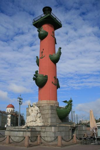 Keywords: column rostral tall red maritime navy victories decorated ship bows green pedestal statue sky blue clouds
