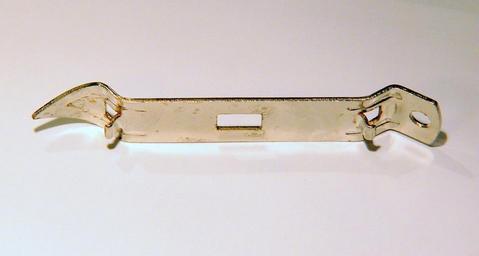 Keywords: Combination can bottle opener.jpg en Combination bottle opener and can puncher church key Chrome-plated steel 4 25 inch 108 mm long de Flaschenöffner it Apritappi eo botelo malfermilo own Caltrop 2009-10-11 Can openers Bottle openers