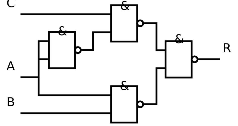 Keywords: Combinational circuit NAND gates.svg en Combinatioal circuit with only NAND gates es Circuito combinacional con sólo puertas NAND own Dizquierdol 2011-01-19 Simbología IEC Realizado con Dia 0 96 e Inkscape 0 48 Digital circuit diagrams