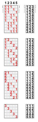 | Keywords: Combinations with repetition; 5 multichoose 3; grouped.svg The 3-element multisets with elements from a 5-element set 3<nowiki>-</nowiki>combinations of 5 elements with repetitions own Mate2code Related files Combinatorics; 5 choose 3 Combinations with repetition 10×5 matrices 10×3 matrices 5×5 matrices 5×3 matrices |